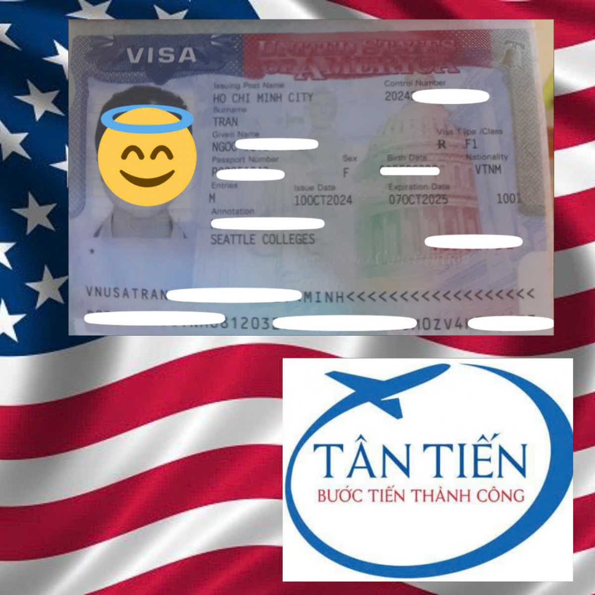 Du học Tân Tiến chúc mừng em Minh đã đậu visa du học Mỹ. Chúc em sớm thích nghi với môi trường mới và học tập thật tốt tại quốc gia có nền giáo dục hàng đầu thế giới. Cảm ơn em và gia đình đã tin tưởng lựa chọn dịch vụ du học của Tân Tiến.