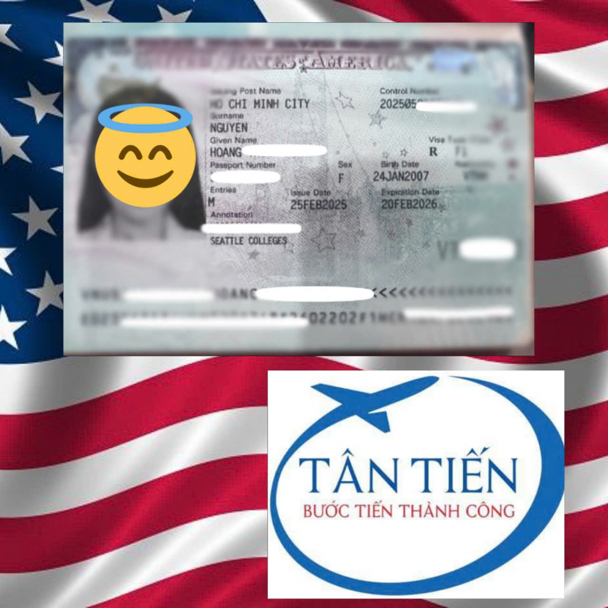Du học Tân Tiến chúc mừng em T.K. đã đậu visa du học Mỹ. Chúc em sớm thích nghi với môi trường mới và học tập thật tốt tại quốc gia có nền giáo dục hàng đầu thế giới. Cảm ơn em và gia đình đã tin tưởng lựa chọn dịch vụ du học của Tân Tiến.