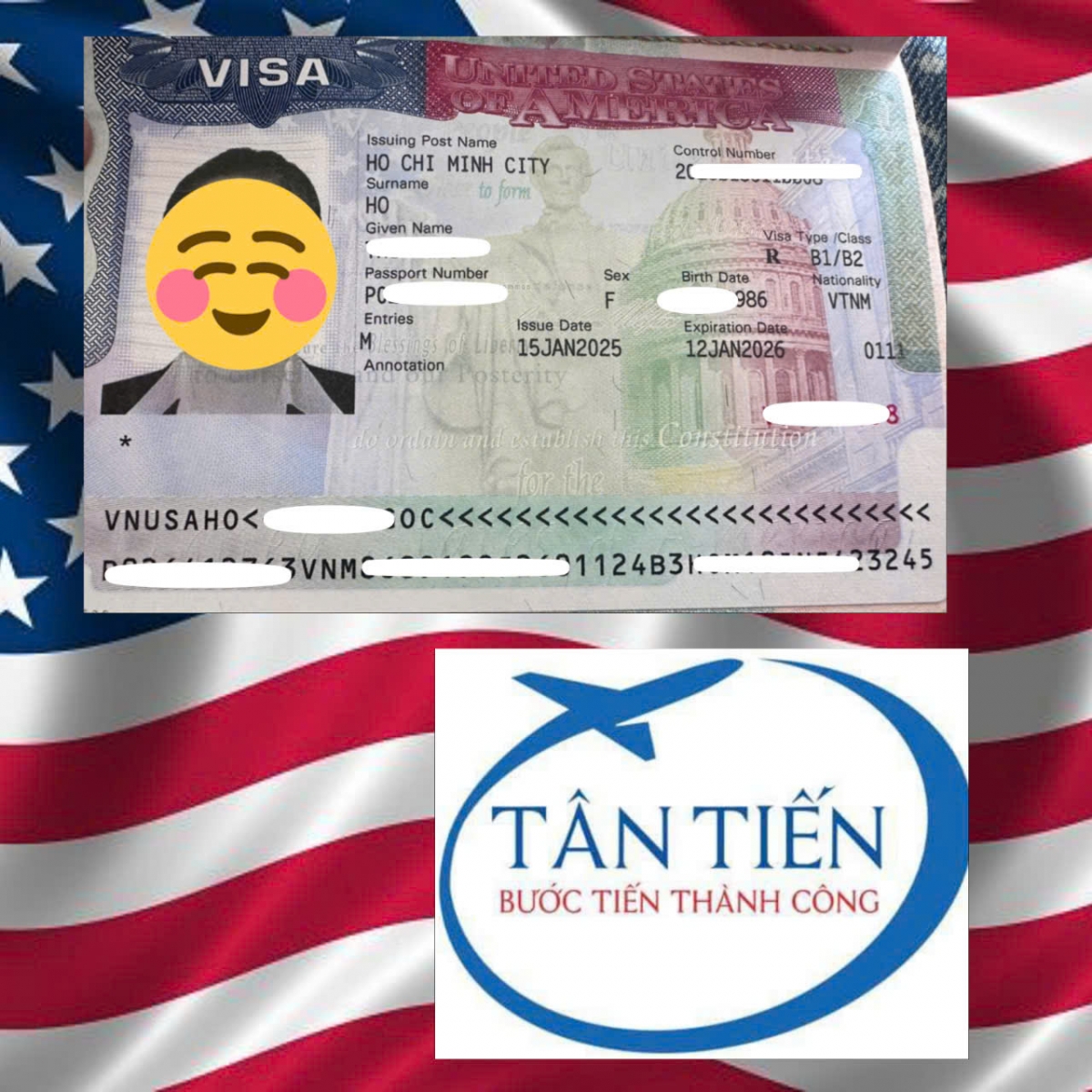 Du học Tân Tiến chúc mừng em Oanh đã nhận được visa du lịch Mỹ. Chúc em có một chuyến đi vui vẻ với nhiều trải nghiệm tuyệt vời tại Hoa Kỳ.
