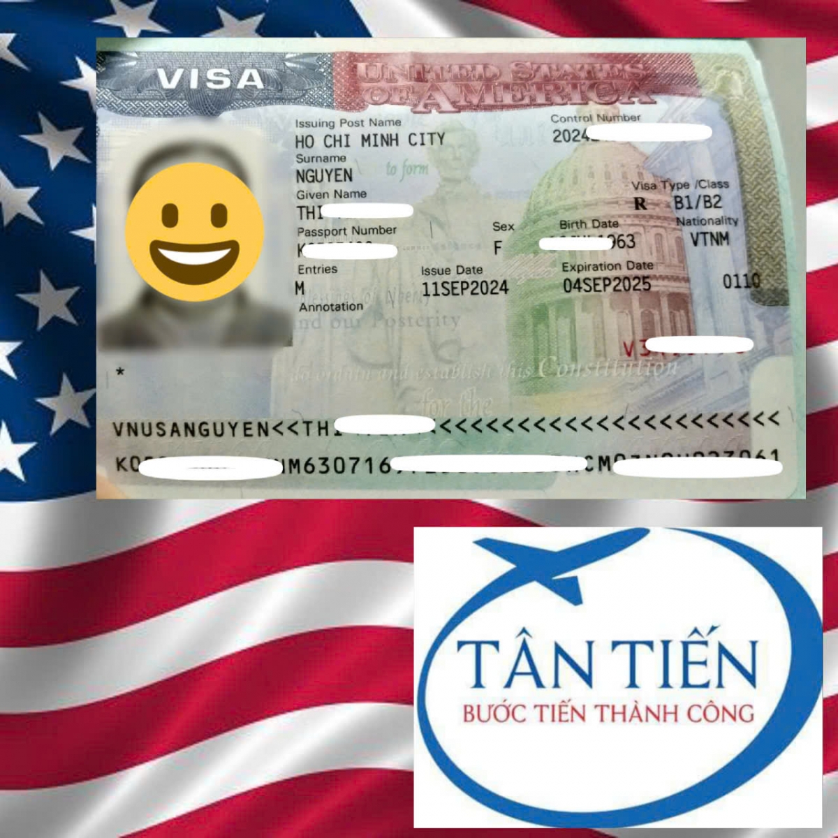 Du học Tân Tiến chúc mừng cô T. đã nhận được visa du lịch Mỹ. Chúc cô có một chuyến đi vui vẻ với nhiều trải nghiệm tuyệt vời tại Hoa Kỳ và được thăm gia đình con gái cũng là cựu du học sinh của Du học Tân Tiến.